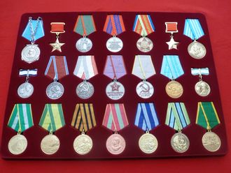 Коллекция состоит из 21 медали СССР с колодками . Металл - латунь, метод изготовления - чеканка. Выполнены один к одному, как оригиналы! Диаметр медалей 32 мм. Весь набор упакован в планшет с пластиковой крышкой. Вся коллекция представлена на 12-ти фото.