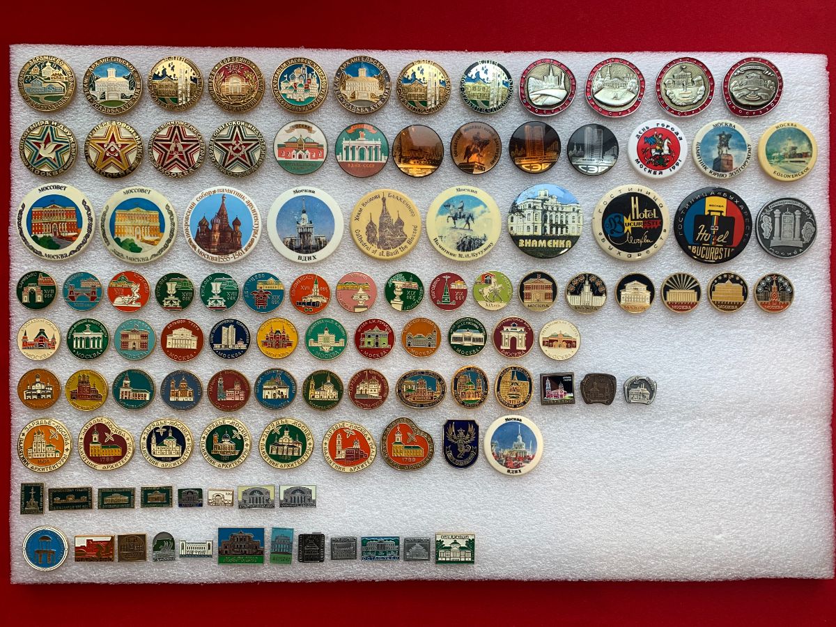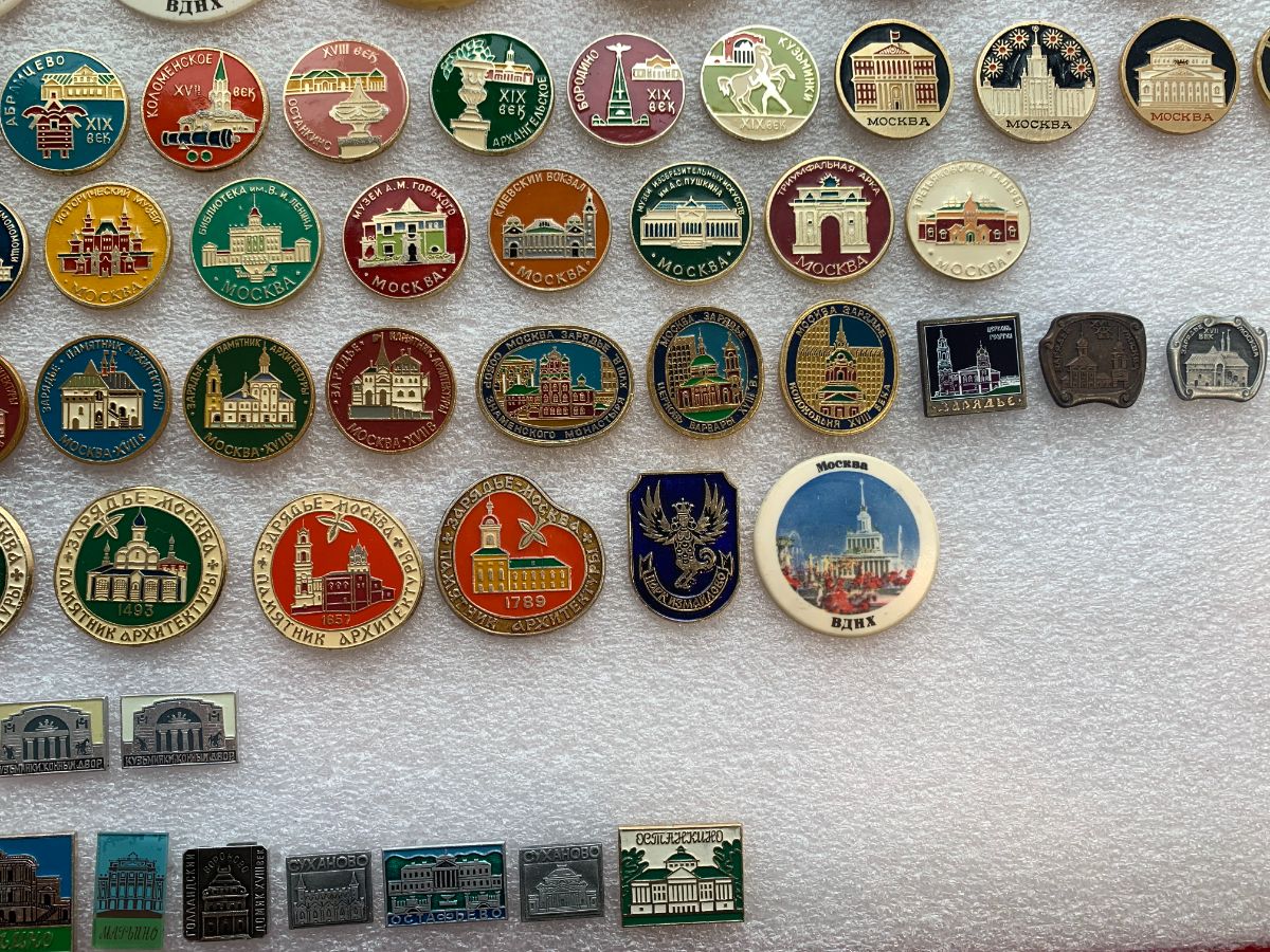 Коллекция значков "Москва и Подмосковье" 1278 штук без повторов! В коллекцию входят подтемы: Архитектура старинной Москвы, Кремль, Соборы, Церкви, Монастыри, Башни, старинные улицы Москвы, красивые старинные места Подмосковья, Зарядье, Царицыно, Кусково, Коломенское, Архангельское, Абрамцево и др., музеи Москвы, мосты Москвы, Оружейная палата, теремной дворец, музей Андрея Рублева, царь-пушка, царь-колокол и др.